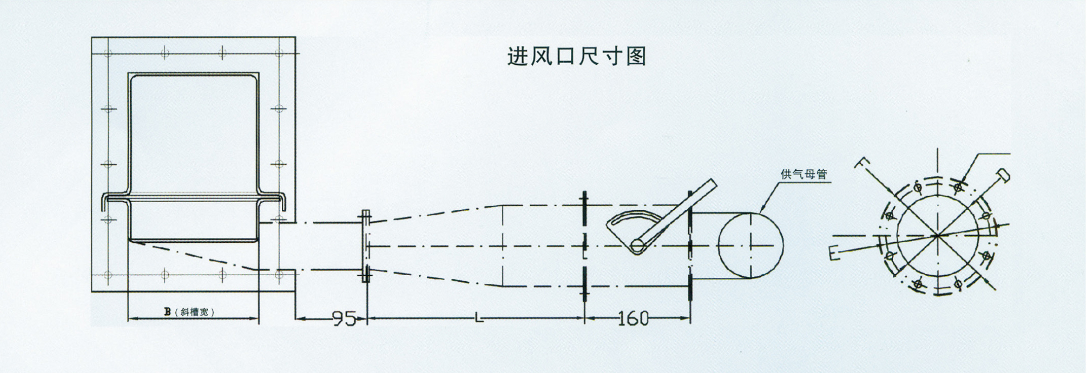 斜槽進(jìn)風(fēng)口安裝尺寸圖: