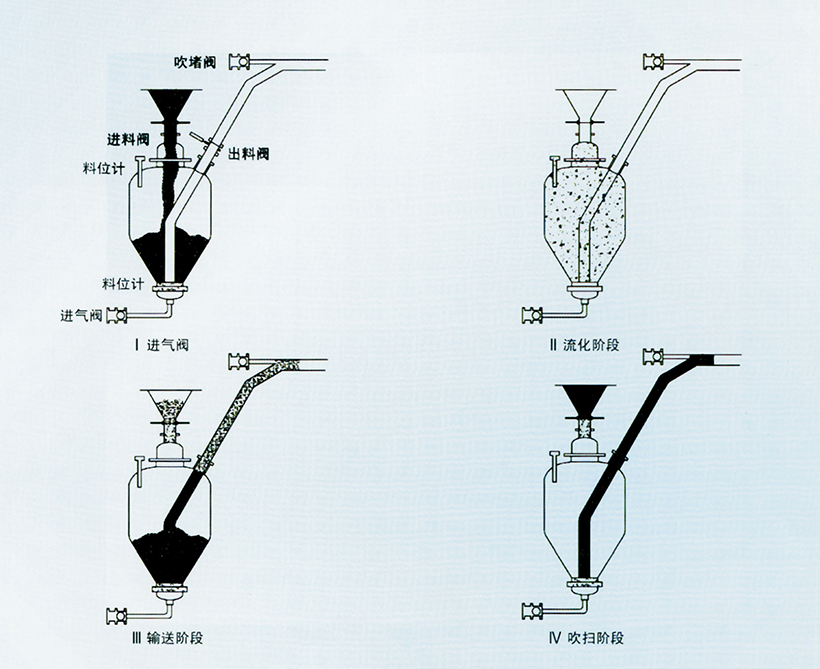 LD型正壓濃相發(fā)送器工作過程分為四個(gè)階段。